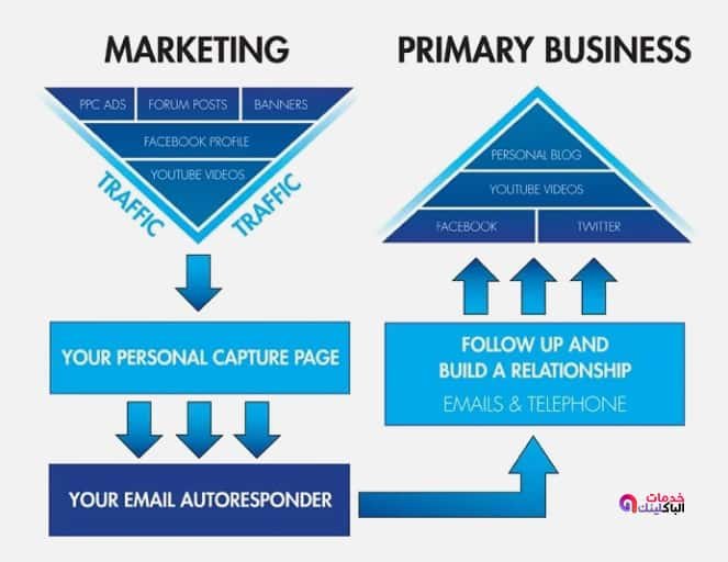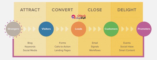 العلاقة تبدأ عندما تنشئ الوعي والادراك حول عملك الأساسي ثم تقود فرصك من خلال مسار ، مع تقديم قيمة هائلة مع المحتوي الخاص بك في كل مرحلة .