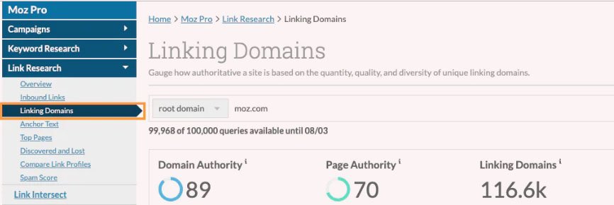 لهذا السبب ، ضع في اعتبارك أنه يجب عليك دائما استخدام سلطة المجال كمقياس نسبي للمقارنة مع ملفات تعريف الارتباط للمواقع الأخرى ، بدلا من القيمة المطلقة التي تسجل فعالية جهود تحسين محركات.