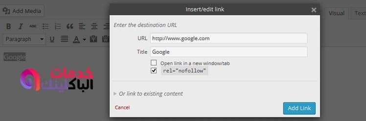 34. Rel Nofollow Checkboxمربع اختيار عدم التتبع: