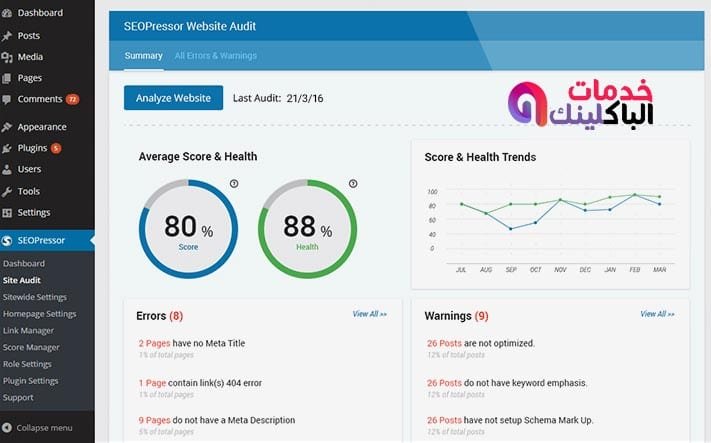 للحصول على أقصى قدر من الاستفادة من اهم اضافات WordPress ، فكر في استخدام SEOPressor. وإذا كنت تعرف بعض مُحسنات محركات البحث ، فإن هذا المكون الإضافي سينقل موقعك إلى مستوى افضل من خلال تحليل الصفحة وإدارة الارتباط وغير ذلك.