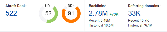 تكمن قوة الرابط الخلفي في قوة الموقع الذي تود عمل باك لينك بداخله وهذه المواقع لديها DA عالية جدا (90+).
