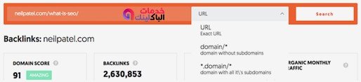 بعد ذلك قم بإضافة الرابط الخاص بأحد أشهر منشورات الموقع المنافس في مستطيل البحث في نفس التقرير ومن ثم قم بتغير القائمة المنسدلة إلى (URL) بدلًا من أسم نطاق (Domain) وأنقر على بحث (Search).