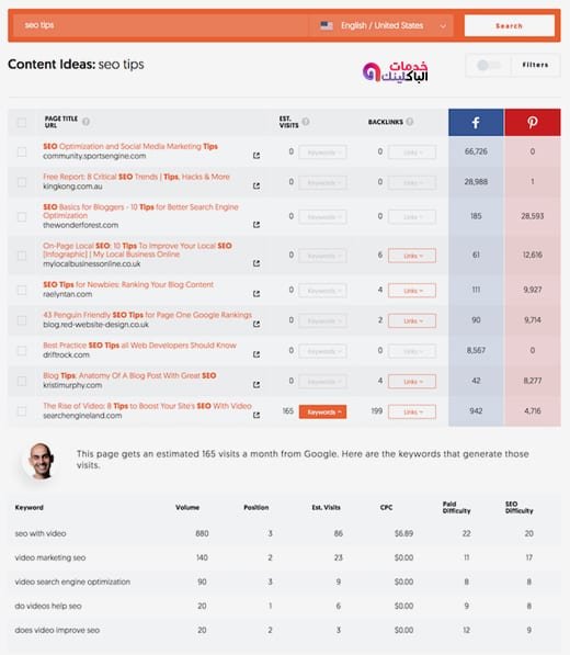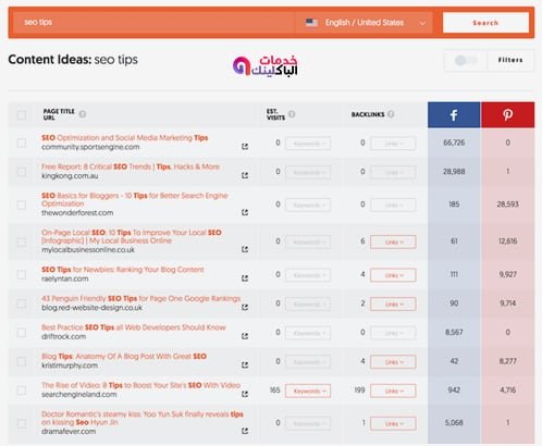 سوف يظهر لك تقرير بأفضل المقالات ومنشورات المدونات الخاصة والمواقع الإلكترونية التي استخدمت نفس الكلمة المفتاحية التي قمت بالبحث عنها تم ترتيبها تبعًا لعدة عوامل منها (عدد مرات مشاركة المحتوى على مواقع التواصل الاجتماعي، مقدر عدد الزيارات التي جلبها المقال للموقع، والباك لينك)