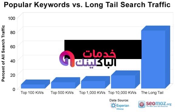 - الجدير بالذكر أن وصلت نسبة الكلمات الرئيسية طويلة الذيل 80 % من حركة مرور Moz بالمقارنة مع الكلمات الرئيسية الشائعة، كما هو موضح بالصورة التالية: